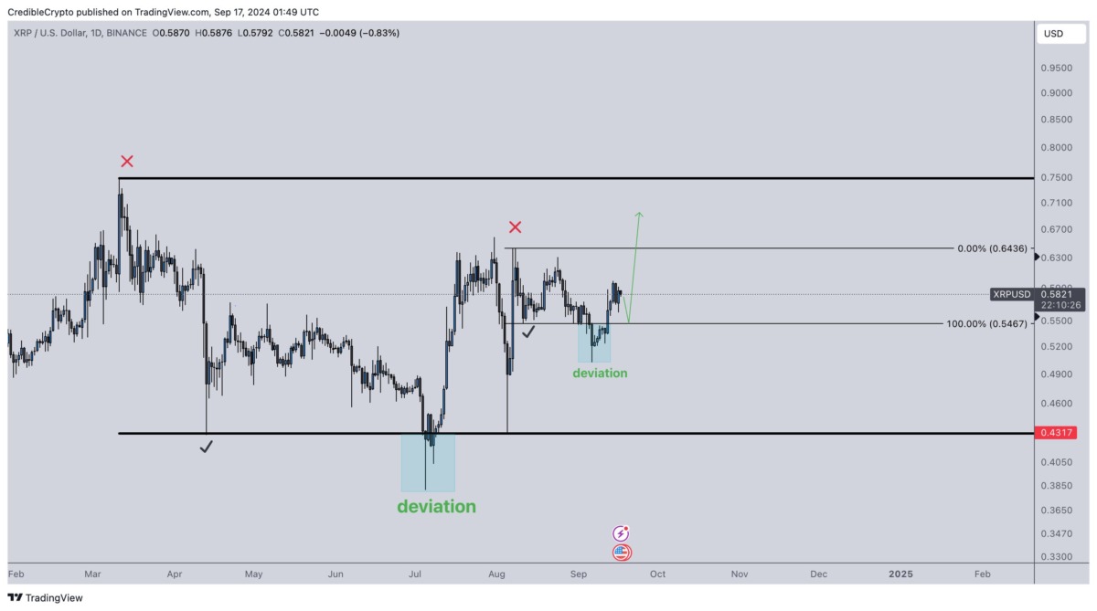 Analist Credible Crypto, token bir menkul kıymet olarak kabul edilmediği ve Ripple, SEC tarafından talep edilen 2 milyar dolara kıyasla 125 milyon dolarlık nispeten küçük bir ceza ödediği için bir sonraki hedefini 0,75 dolar olarak belirledi. XRP yanlısı avukat Bill Morgan da bu tahmine destek verdi.