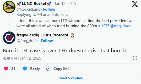 Topluluk, Terraform Labs‘ın iflasının ardından LUNC ve USTC yakımı kampanyalarına hız kazandırmayı planlıyor. Binance’in yakım mekanizmasından gelen destekle şimdiye kadar yaklaşık 400 milyar LUNC token yakıldı.