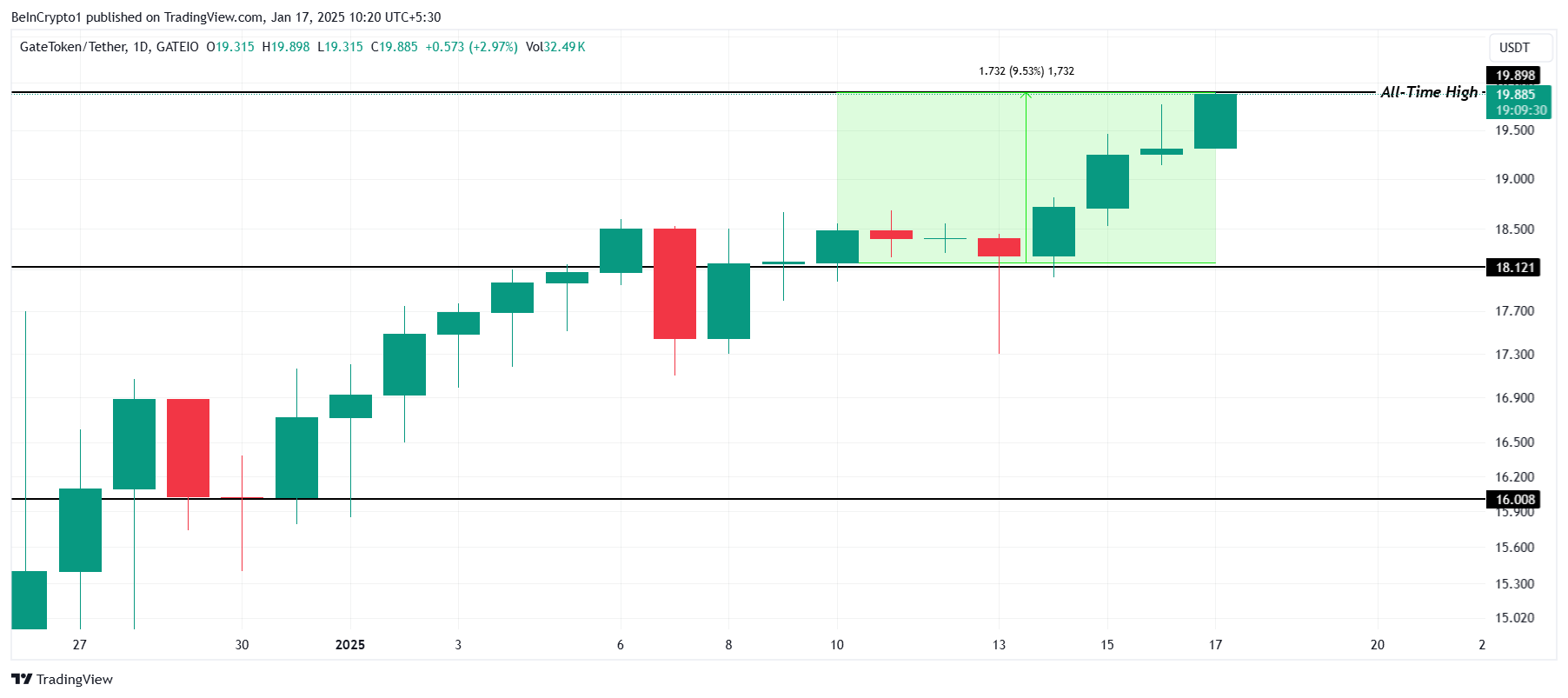 GT fiyatı bu hafta %9,5 artarak 19,89 dolar ile ATH seviyesine ulaştı. Rekor seviyelerde devam eden bu eğilim, güçlü yatırımcı güvenini ve altcoin için artan talebi vurguluyor. Yukarı yönlü ivme bozulmadan kalırsa GT, destek tabanı olarak 20,00 doları talep edebilir. Bunu başarıyla yapmak, yükseliş yörüngesini güçlendirerek 25,00 dolara daha fazla yükseliş için zemin hazırlayacaktır. Ancak, olası bir tersine dönüş bu trendi bozabilir. Böyle bir durumda GT 18,12 dolara gerileyerek yükseliş görünümünü geçersiz kılabilir ve son kazançları silebilir.