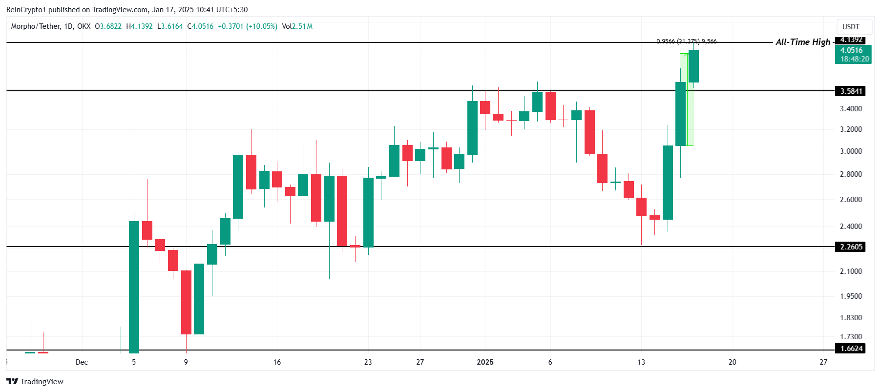 MORPHO Fiyat Analizi. Kaynak: TradingViewSon dakika gelişmelerden anında haberdar olmak için bizi Twitter’da, Facebook‘ta ve Instagram‘da takip edin ve Telegram ve YouTube kanalımıza katılın!