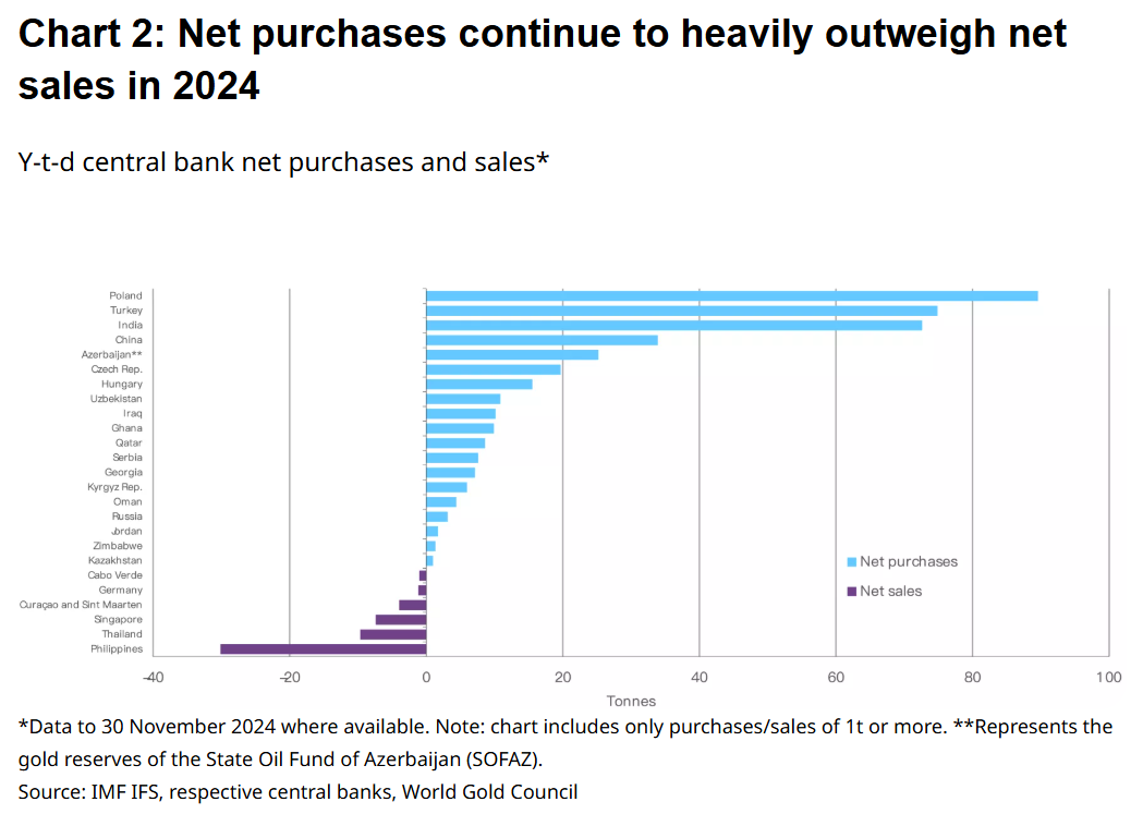 Bu arada, ABD seçimlerinin ardından Kasım ayında altın fiyatları düştü. Analiste göre, bazı merkez bankalarına birikim yapma konusunda muhtemelen ilave bir itici güç sağladı. Uzman, alımların çoğunun son aylarda aktif olan ülkelerden geldiğini de sözlerine ekliyor.