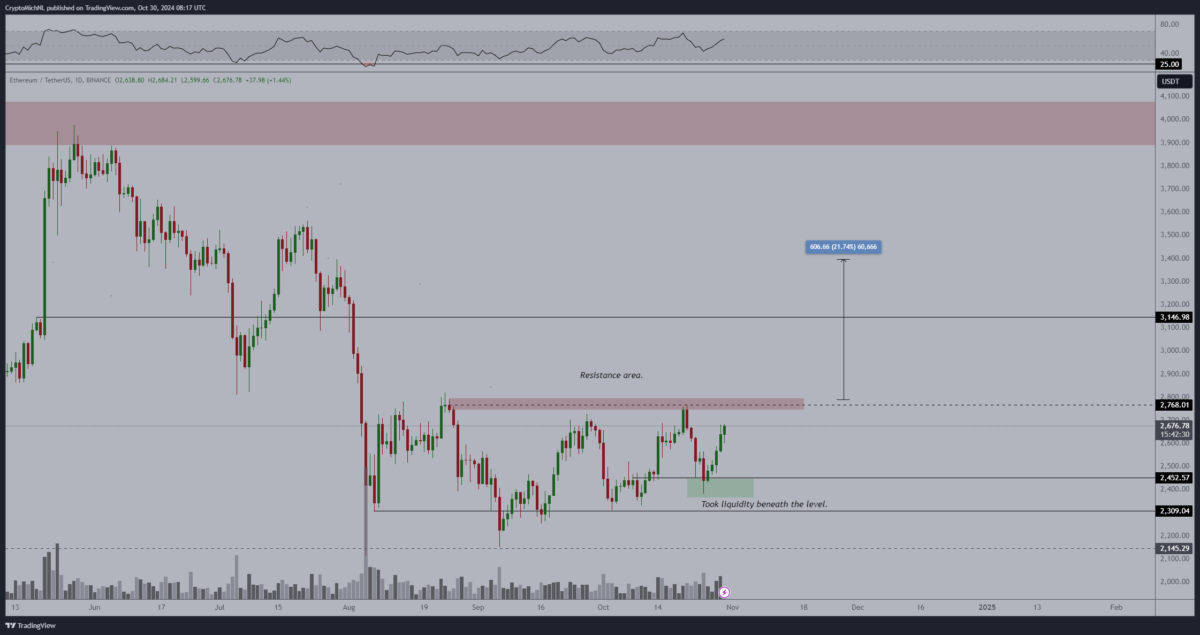 Michaël Van de Poppe ayrıca lider altcoin Ethereum (ETH) için de tahminlerini paylaşıyor. Analiste göre Ethereum, 2.300 dolar civarındaki destek seviyesinin korunmasının ardından Kasım ayında %13’ün üzerinde artış gösterebilir. Bu doğrultuda analist, “Ethereum likiditeyi aldı ve dirence kadar geri koştu. Önümüzdeki bir iki hafta içinde bunu aşacağımızı ve Kasım ayında 3.000+ doları göreceğimizi düşünüyorum.” diyor. Bu arada Ethereum, son 24 saatte %5’lik bir düşüşle, yazı sırasında 2.522 dolardan işlem görüyordu.