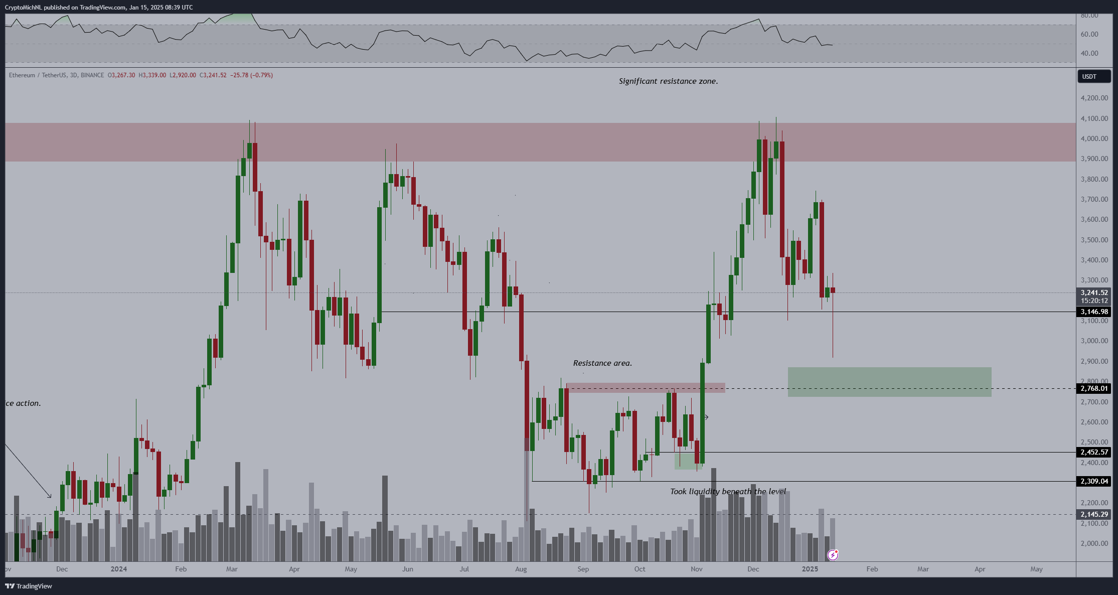 Ethereum düşük seviyelerin altındaki tüm likiditeyi aldı ve tekrar yukarı döndü. Eğer bu 3.000 doların üzerinde kalacaksa, o zaman en düşük seviyeyi gördüğümüzü ve bu çeyrekte 4.000 dolar bölgesini test edeceğimizi varsayıyorum.