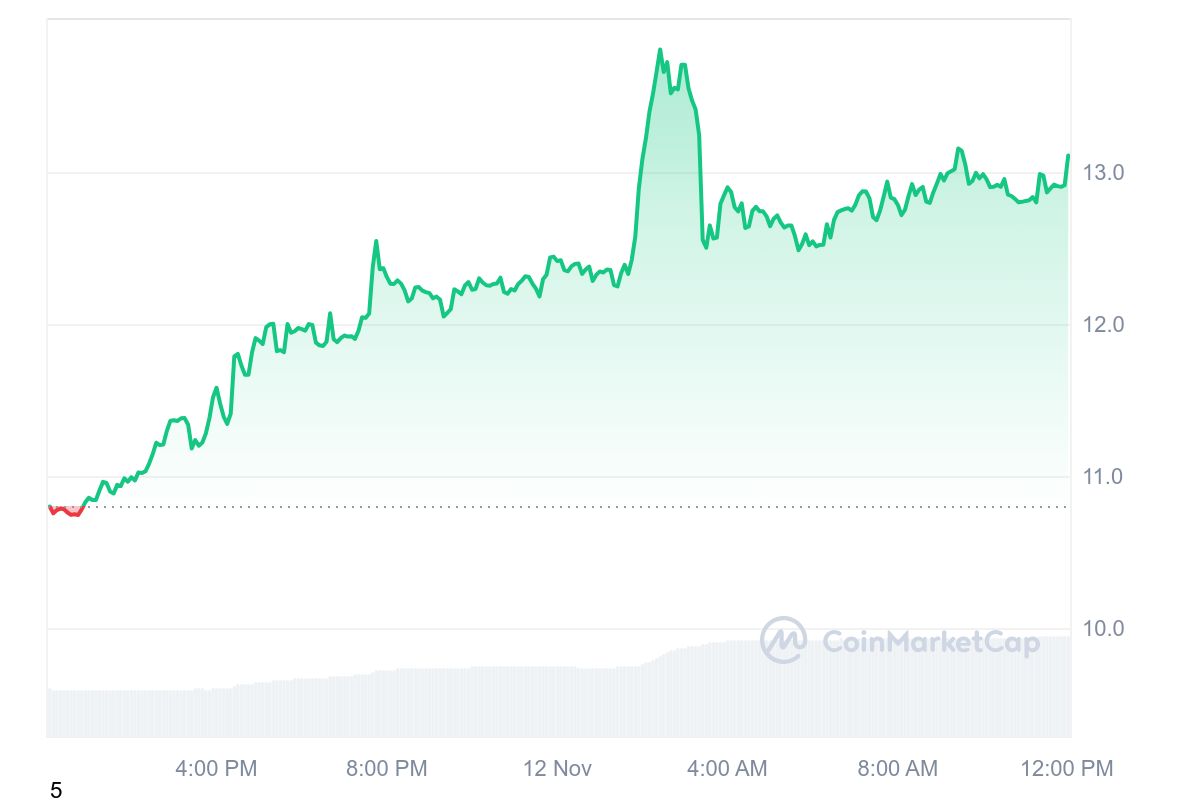 Piyasa değeri ile 20. Sırada yer alan altcoin, yüzde 21’lik bir yükseliş ile işlem görüyor. Aptos, günlük bazda 10.73 dolardan 13.99 dolara kadar yükselmeyi başardı. Şu anda ise 13.11 dolardan el değiştiriyor. Kripto para, tüm zamanların en yüksek seviyesi olan 19.90 doların yüzde 35 kadar altında. Önümüzdeki süreçte rekorunu kırıp kırmayacağını zaman gösterecek.