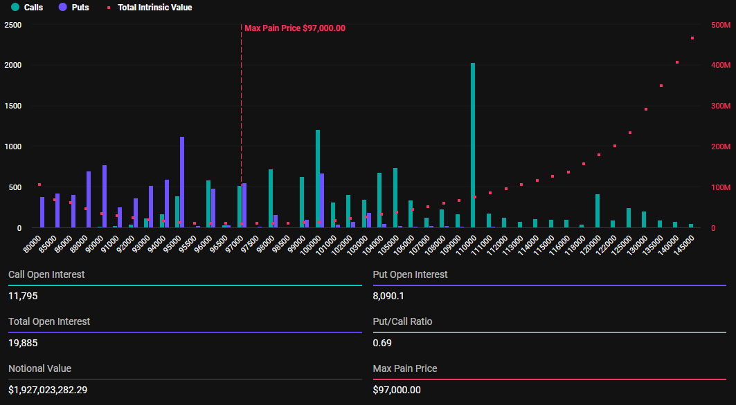 Kripto para piyasası bugün 2,639 milyar dolarlık opsiyon sözleşmelerinin sona ermesine tanık olacak. Özellikle son günlerde gördüğümüz dalgalanma nedeniyle, bu büyük vade sonu kısa vadeli fiyat hareketlerini etkileyebilir. Vadesi dolacak Bitcoin opsiyonlarının 1,9 milyar dolar. Ayrıca, Ethereum’da 712 milyon dolar değerinde opsiyonun süresi sona erecek. Kripto piyasaları oynaklığın arttığını mı görecek yoksa 2025’e istikrarlı bir başlangıç mı yapacak?