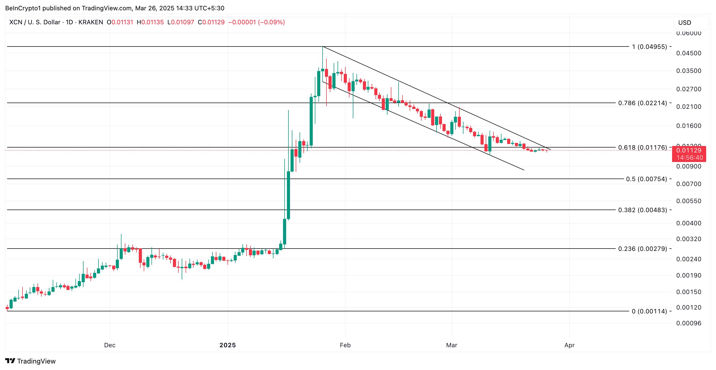 Günlük grafiğe bakıldığında, XCN’nin düşen trend çizgisini aşma potansiyeline sahip olduğu görülüyor. Eğer bu kırılma gerçekleşirse, token fiyatı 0.022 dolara kadar yükselebilir. Bu seviyeye en son 18 Şubat tarihinde ulaşılmıştı.