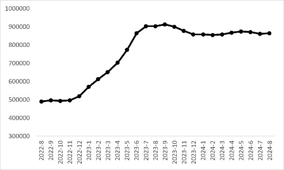 Ortalama otomobil fiyatlarının bir önceki aya kıyasla bir miktar yükseldiği görülüyor (Şekil 2). Temmuz’da 862 bin 232 TL olan ortalama otomobil fiyatı, Ağustos’ta 865 bin 433 TL oldu (Şekil 2 -üst panel). Otomobil fiyatlarındaki yıllık değişim oranındaki düşüş durağan hale geldi. Ortalama otomobil fiyatı bir önceki yıla kıyasla yüzde 4,2 azaldı (Şekil 2- alt panel).