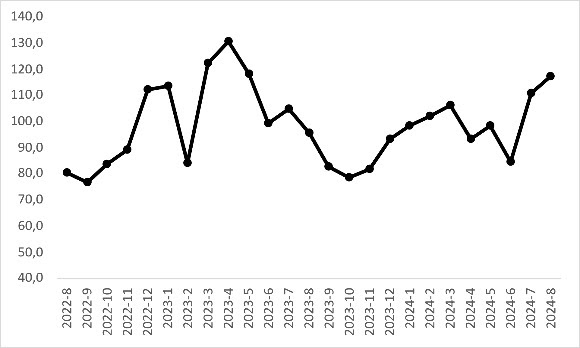 Temmuz’da talep göstergesinin hem bayram dönüşü olması hem de otomobil firmalarının Avrupa Birliği’nin yeni düzenlemeleri üzerine başlattığı kampanyalar sebebiyle belirgin bir yükseliş gösterdi. Talep göstergesindeki bu yükseliş ivme kaybetse de Ağustos’ta da yükselmeye devam ediyor. Otomobil talep endeksinin Ağustos’ta Temmuz’a kıyasla yüzde 5,9, geçen yılın aynı ayına kıyasla ise yüzde 22,6 daha yükseldiği görülüyor. (Şekil 3)