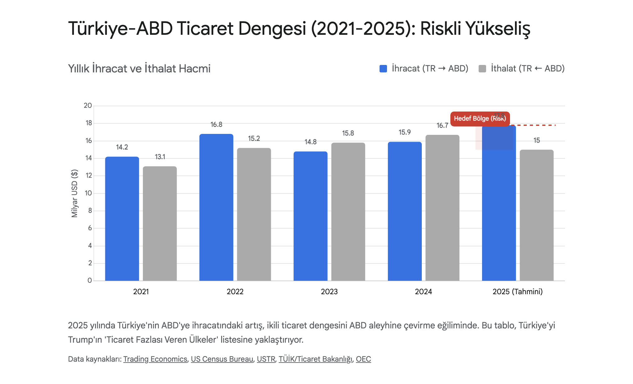 Türkiye, son yıllarda ABD ile olan ticaret hacmini 30 milyar dolar seviyesinin üzerine taşıyarak tarihi bir başarıya imza atmıştır. “100 Milyar Dolar Ticaret Hacmi” hedefi doğrultusunda ilerleyen iki ülke arasındaki ekonomik ilişkiler, paradoksal bir şekilde bu başarının kurbanı olma riskiyle karşı karşıyadır. Trump’ın “Ticaret Fazlası Veren Ülkeler” (Trade Surplus Countries) kategorisi, Türkiye için kritik bir eşik teşkil etmektedir.