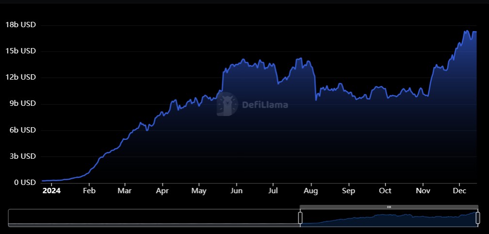DefiLlama’dan alınan verilere göre, Ethereum üzerindeki restake’lerin TVL değeri 1 Ocak’ta yaklaşık 284 milyon dolardı. Bu rakam 15 Aralık itibarıyla yaklaşık 60 kat artışla 17,26 milyar dolara ulaştı.