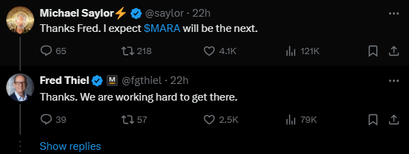 MicroStrategy’nin Saylor, kripto madencisi MARA Holdings’in Nasdaq 100’e katılırken sıradaki Bitcoin firması olacağını öne sürdü. Saylor, 14 Aralık tarihli gönderisinde, MARA Holdings CEO’su Fred Thiel’e yanıt olarak şunları söyledi: