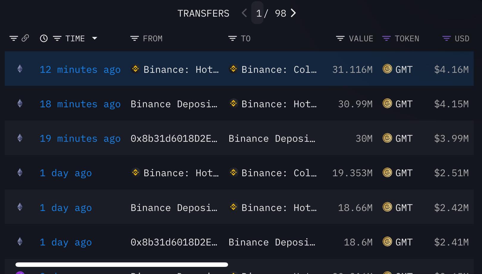 ETH ve GMT satışı da gerçekleşti