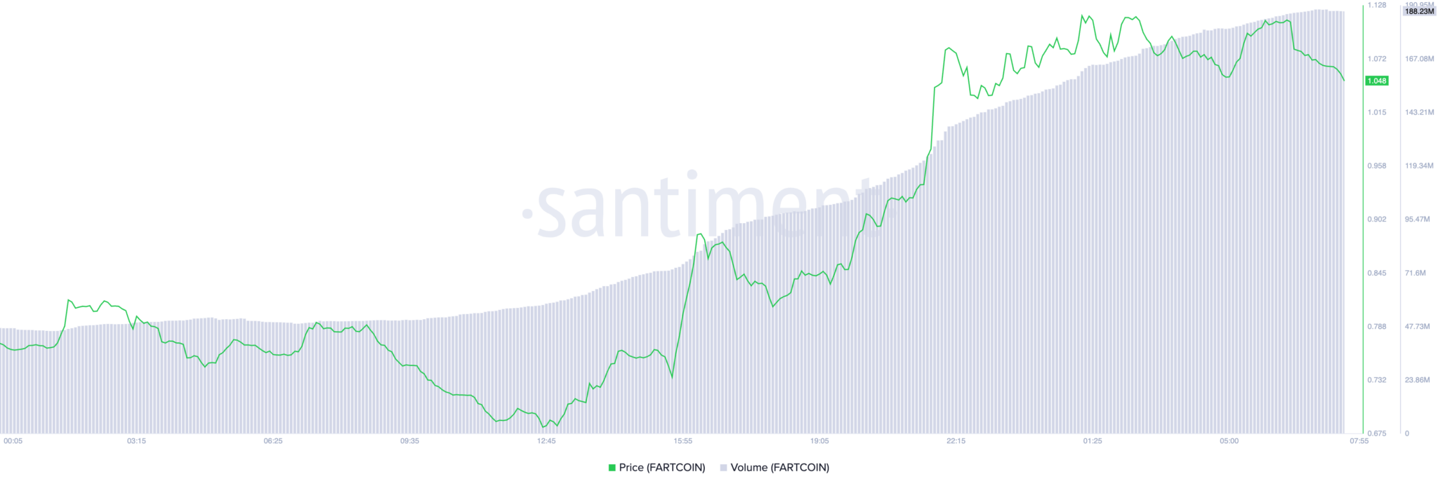 FARTCOIN Fiyat ve İşlem Hacmi. Kaynak: Santiment