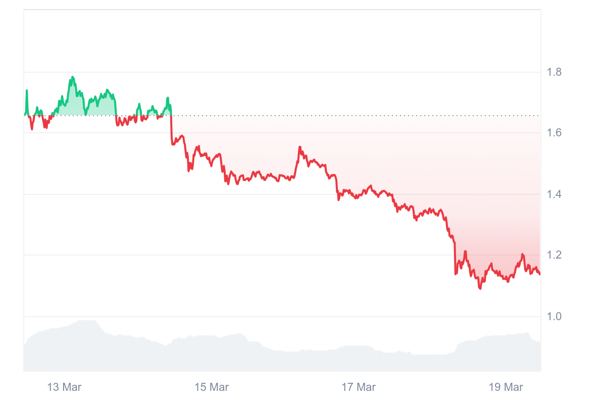 Bu zorlukların ortasında, PI’nin fiyat performansı da bir darbe aldı. Altcoin, geçtiğimiz hafta değerinin %29’6’ini kaybederek keskin bir fiyat düşüşü yaşadı. Bu düşüş, CoinMarketCap’te PI’nin 12. sıradan 17. sıraya düşmesine yol açtı. Daha geniş kripto para piyasası da bir gerileme yaşarken, PI’nin kayıpları daha belirgin oldu. Yazı sırasında PI, son 24 saat içinde %3,91 düşüşle 1,13 dolardan işlem görüyordu.