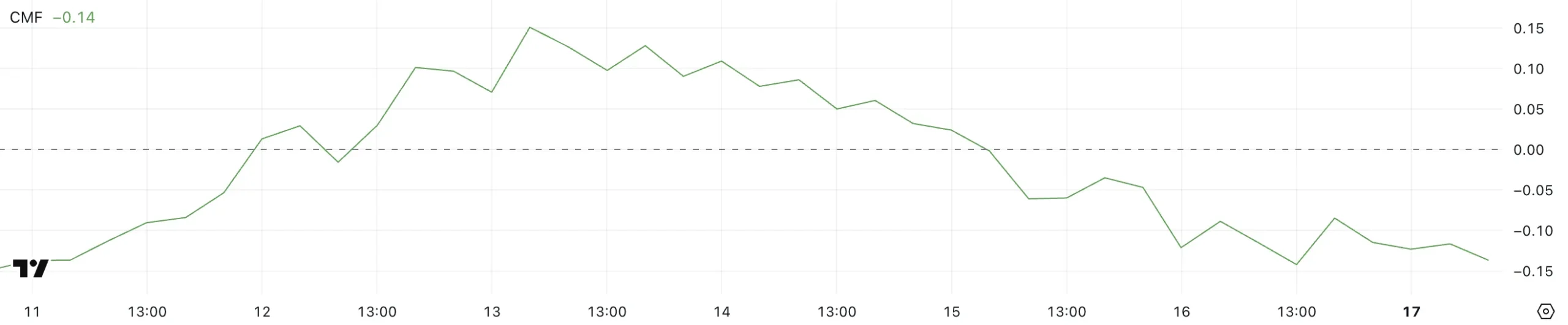 Pi Network’ün CMF (Chaikin Money Flow) göstergesi, son dört gün içinde keskin bir dönüş yaptı ve 0.15 seviyesinden -0.14 seviyesine düştü. Bu, piyasadaki satış baskısının arttığını ve alıcıların zayıfladığını gösteriyor.