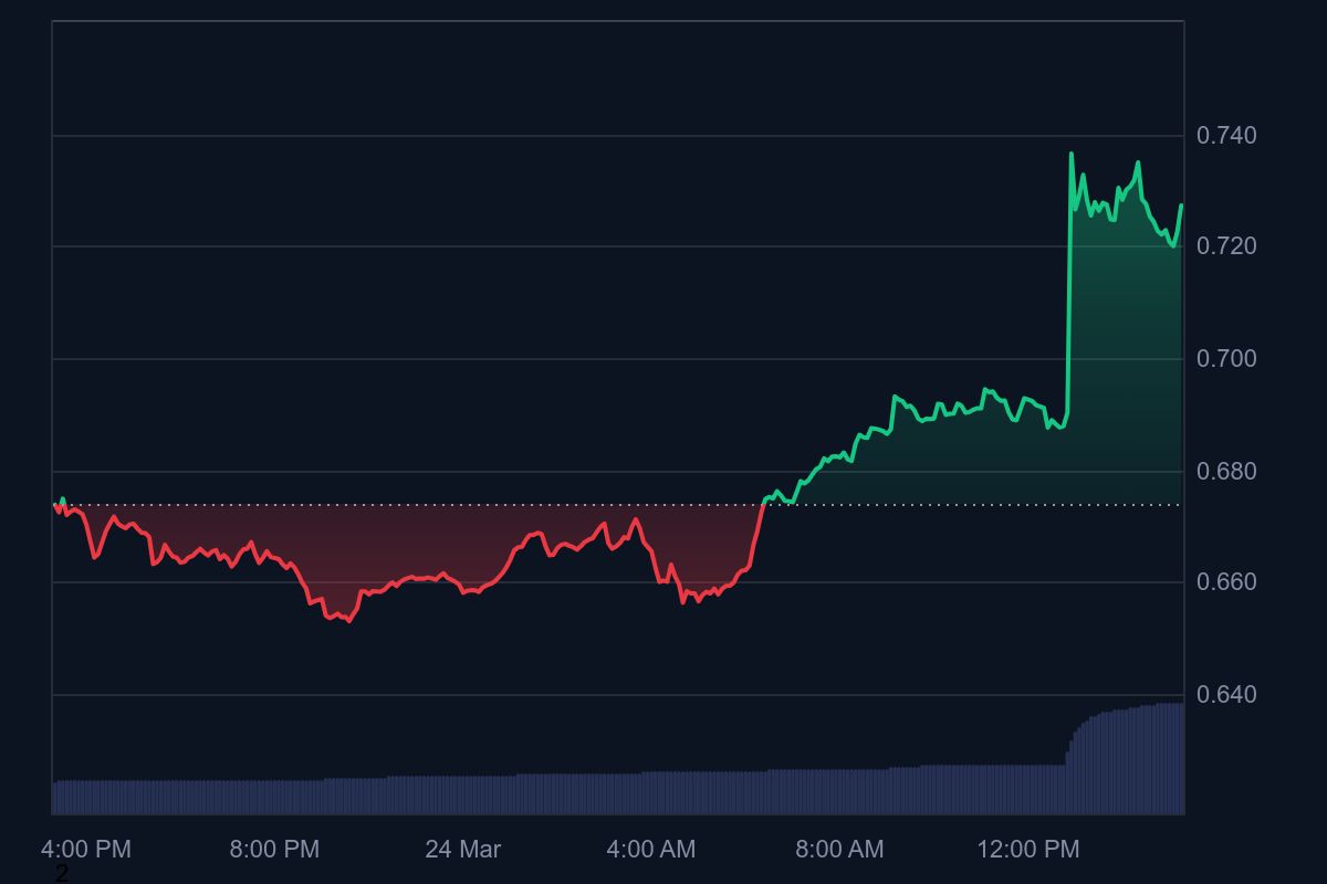 CoinMarketCap verilerine göre, DYDX token’ı şu anda 0,74 dolardan işlem görmekte ve piyasa değeri 561,85 milyon dolar, işlem hacmi ise 24,59 milyon dolar olarak kaydedildi. Bu değerler, son 24 saatte %122,42 oranında bir artış yaşandığını gösteriyor. DYDX token’ının fiyatı, son 24 saat içinde %9,29’luk bir artış yaşarken, son birkaç aydaki kayıplarına rağmen potansiyel bir büyüme sinyali veriyor. Token’ın tamamen seyreltildiği piyasa değeri ise 570,73 milyon dolara ulaşmış durumda.
