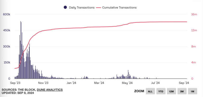 Into The Block verilerine göre, ağ üzerindeki günlük işlem sayısı bu yıl rekor seviyede düşüş yaşadı ve bu durum, FRIEND tokenin zayıflayan fiyat hareketleriyle uyumlu bir tablo çizdi. FriendTech V2’nin ve airdrop’un bu yılın başlarında başlatılmış olmasına rağmen, projenin büyümesi durakladı. Sonuç olarak, FRIEND token üzerinde baskın olan düşüş hissiyatı, yatırımcılar arasında endişeye yol açtı.