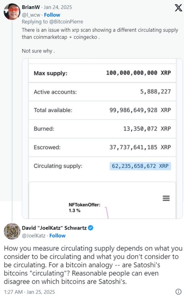 Kriptokoin.com’dan takip ettiğiniz üzere Ripple CTO’su David Schwartz, sık sık piyasa hakkındaki görüşlerini paylaşıyor. Son olarak Schwartz, XRP’nin dolaşımdaki arzına ilişkin yakın tarihli bir tartışmada, Bitcoin ve gizemli yaratıcısı Satoshi Nakamoto’ya atfedilen kripto paralar ile paralellikler kurdu. Schwartz, kripto ortamında “dolaşımdaki arzı” neyin oluşturduğunu tanımlamanın karmaşıklığını vurguladı.