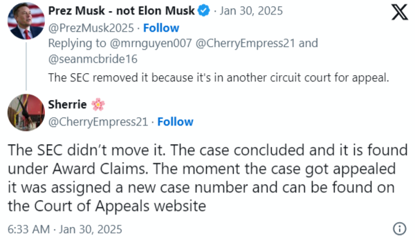 XRP topluluğu arasında popüler bir uzman olan Sherrie, ABD SEC’in Ripple davasını kaldırdığı iddialarını yalanladı. Ripple Labs’ın duruşma mahkemesi seviyesinde olmadığını ve davanın SEC’in Ödül Talepleri sayfasında gösterileceğini belirtti. Ayrıca, davaya yeni bir dava numarası verildiği için Temyiz Mahkemesi web sitesinde duruyor. Dava bölge mahkemesinde sonuçlandı ve Yargıç Analisa Torres Ripple’ın 125 milyon dolar ceza ödemesine hükmetti. Bu rakam SEC’in beklediği 2 milyar dolardan çok daha düşüktü.