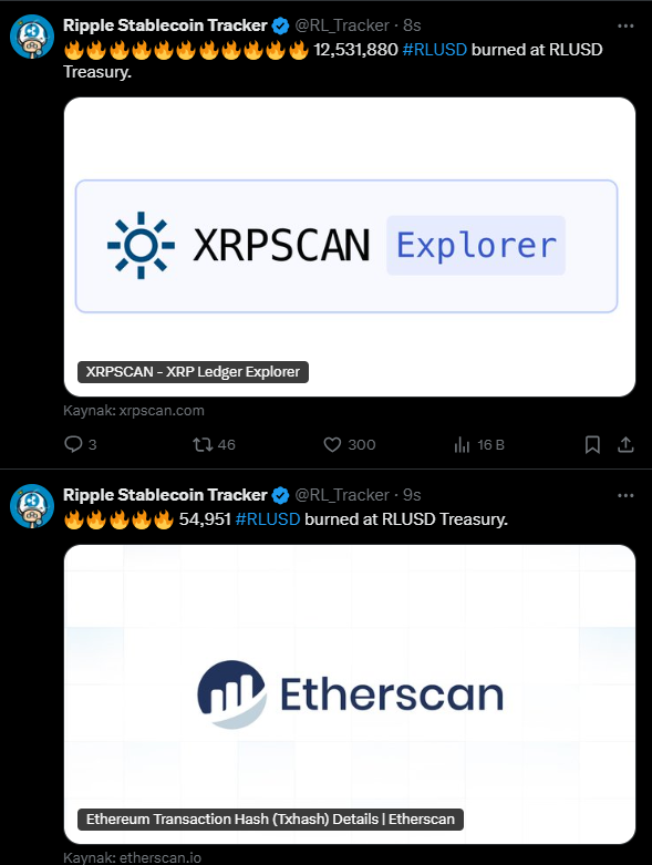 Ripple, Ripple USD (RLUSD) tokenlerinin neredeyse tamamını yakarak kripto dünyasında cesur bir hamle yaptı. Tek bir günde 46,67 milyon RLUSD tokenı kalıcı olarak dolaşımdan kaldırıldı. Ripple Stablecoin Tracker’dan gelen haberlere göre, 46,47 milyon RLUSD tokeninin yakın zamanda yakılması, Ripple’ın uzun zamandır beklenen stablecoin’inin lansmanını resmen duyurmaya hazırlandığının bir işareti.