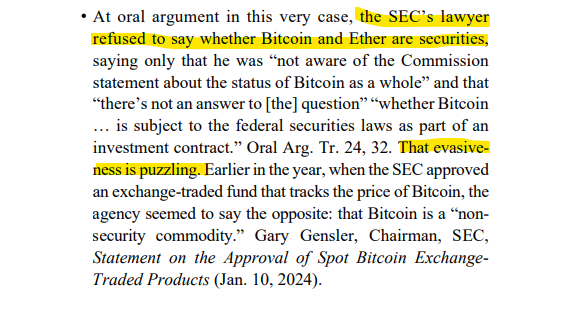 Eski SEC avukatı James Farrell, mahkemenin ABD SEC tarafından sunulan 3 gerekçeden herhangi birinin yeterli olabileceğine karar verdiğini açıkladı. Bunlar “kural koymaya gerek yok; kural koymadan önce daha fazla bilgi istemek; veya diğer kaynak öncelikleri. Ancak SEC 1 ya da daha fazlasını seçmek ve nedenini açıklamak zorundaydı.”