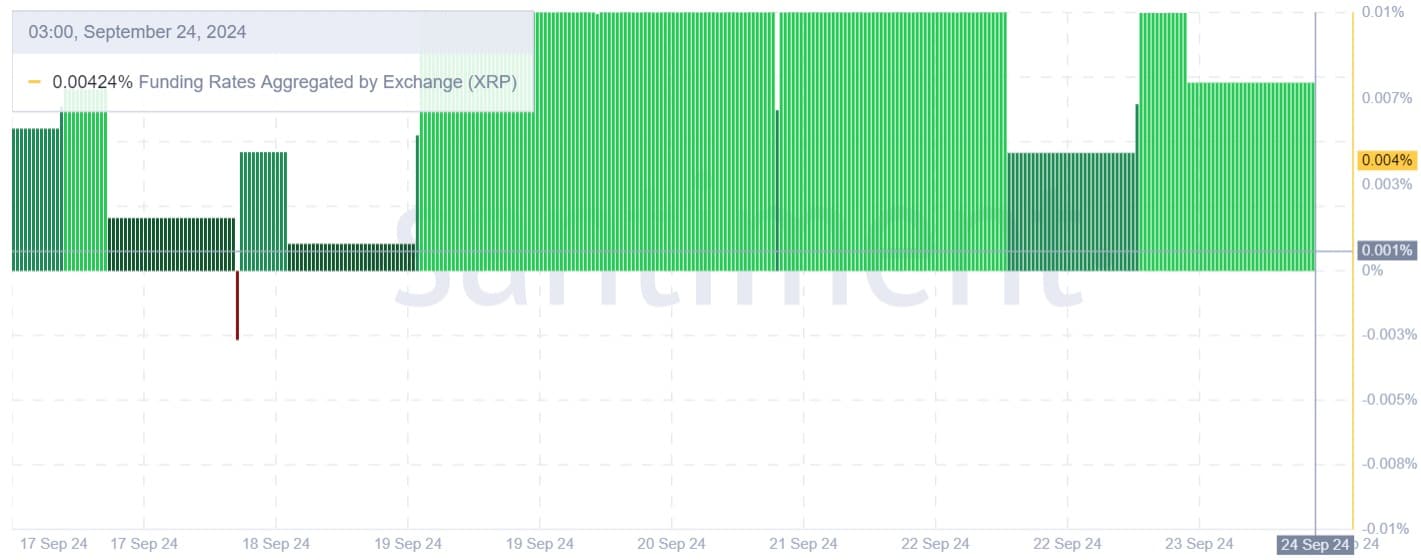 XRP’nin açık pozisyon-ağırlıklı fonlama oranı da son iki haftadır pozitif durumda. Bu durum, long pozisyon açan yatırımcıların daha fazla talep gördüğünü ve fiyatların yükselmesi beklentisini doğruluyor. Yatırımcılar, olumlu piyasa sinyalleri karşısında temkinli bir şekilde iyimserliğini koruyor.