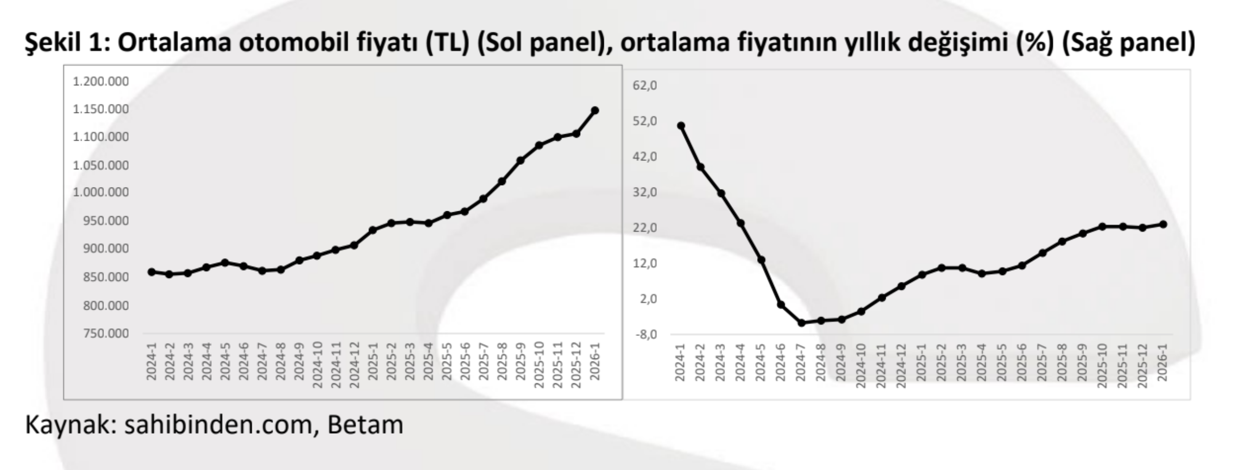 Piyasada ilk bakışta dikkat çeken nokta, ortalama otomobil fiyatının 1 milyon 149 bin TL seviyesine gelmesi. Yıllık bazda bakıldığında bu ortalamanın yüzde 22,9 arttığı görülüyor. Ancak aynı dönemde enflasyondan arındırıldığında, yani reel olarak bakıldığında fiyatların yüzde 5,9 gerilediği bir tablo ortaya çıkıyor. Bu ayrım önemli: Vatandaşın cebinden çıkan para artıyor, fakat paranın satın alma gücü aynı hızda artmadığı için “gerçek” fiyat baskısı azalıyor.