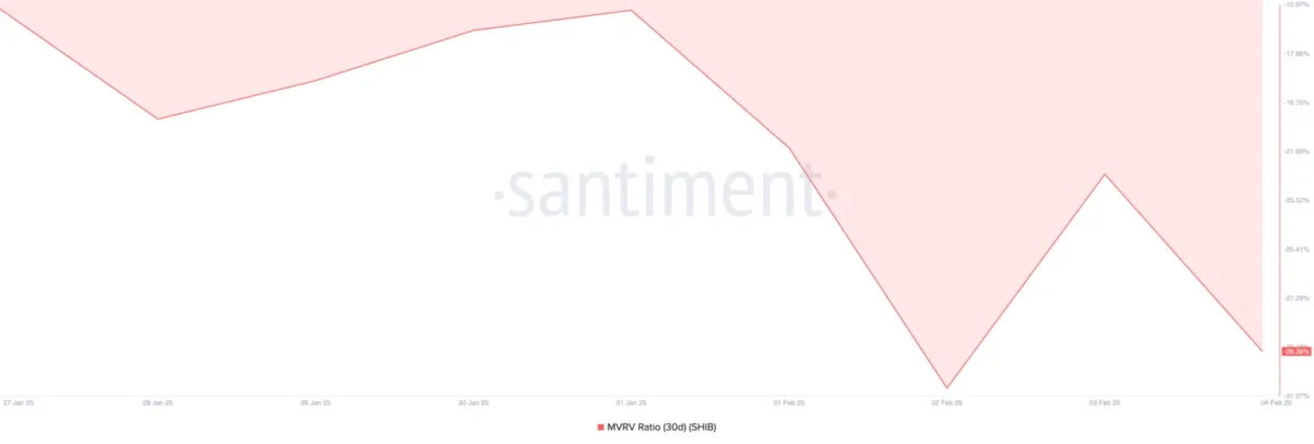 SHIB’in piyasa değeri / gerçekleşen değer (MVRV) oranı şu an -%29,35 seviyesinde. Bu durum, SHIB’in mevcut piyasa fiyatının yatırımcıların ortalama maliyetinin altında olduğunu gösteriyor.