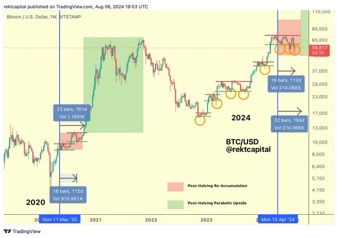 Kaynak: Rekt CapitalRekt Capital, Bitcoin (BTC)’nin yeniden birikim aralığının en düşük seviyesinin üzerine çıkmasının ve CME Boşluğunu doldurmasının ne kadar sürebileceği konusunda şunları söylüyor: