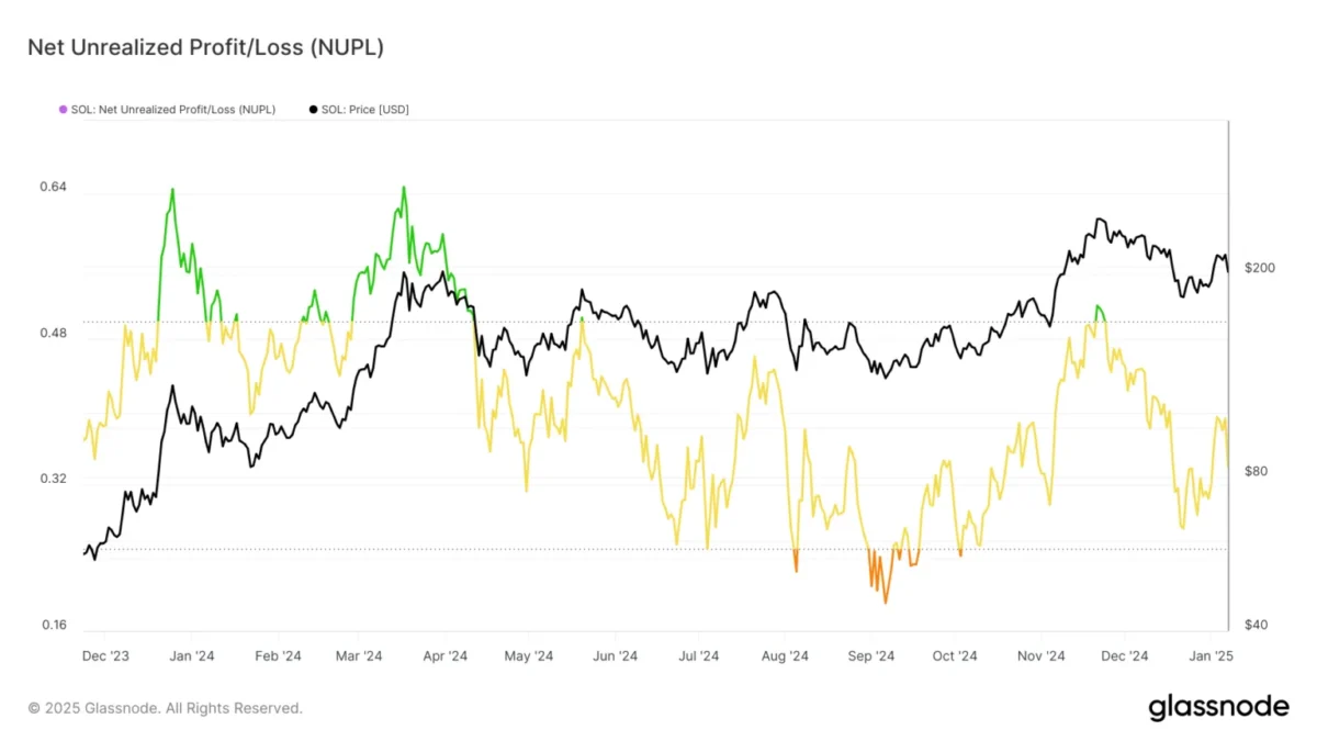 Net Gerçekleşmemiş Kar/Zarar (NUPL) metriği, yatırımcıların hala kârda olduğunu ve ciddi kayıplar yaşamaktan kaçındığını gösteriyor. Ancak bu durum, Solana’nın güçlü bir yükseliş momentumu oluşturmasını da zorlaştırıyor. Tarihsel olarak, bu tür bir kârda olma durumu genellikle piyasada durağan bir dönem yaratmıştır. Bu nedenle, SOL Coin şu anda keskin fiyat hareketlerinden ziyade daha temkinli bir piyasa havası yansıtıyor.