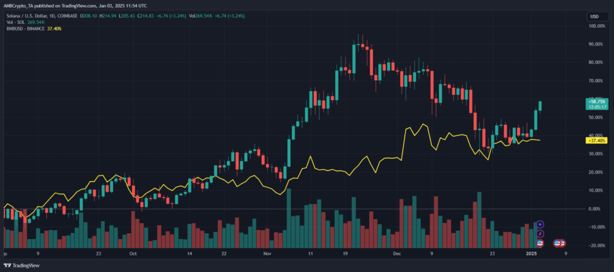 Öte yandan, Solana (SOL) yükselişi kripto piyasasında dikkatleri üzerine çekiyor. Solana, geçtiğimiz haftalarda %58,75’lik bir artış kaydetti. Böylece, güçlü bir toparlanma trendi sergiledi. Bu yükseliş, yatırımcıların Solana’ya olan ilgisinin artmasını sağladı. Aynı zamanda, hacimlerde dikkat çekici bir büyüme yaşandı.