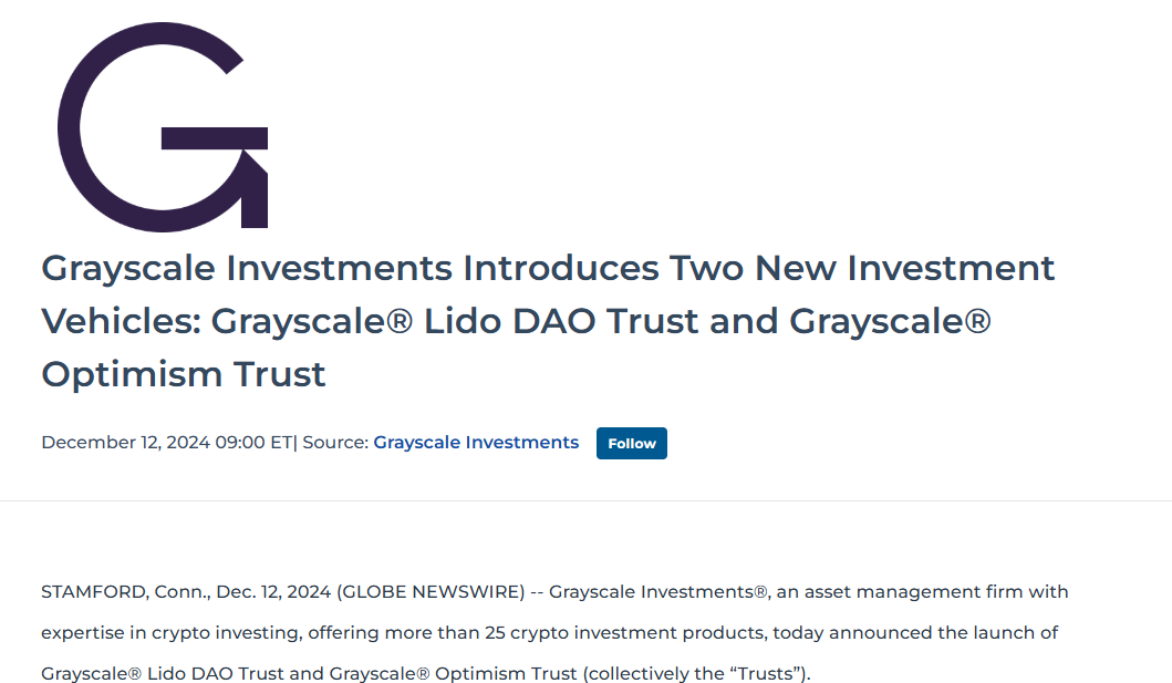 Grayscale, Optimism ve altcoin projesini ürün listesine ekledi