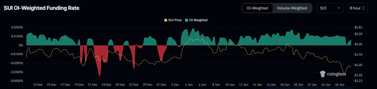 RSI’nin zayıf görünümüne rağmen, SUI’nin fonlama oranı pozitif kalmaya devam ediyor. Ocak 2025’ten bu yana bu olumlu oran, yatırımcıların uzun vadede SUI’nin potansiyeline olan güvenlerini yansıttı. Özellikle Aralık 2024’te, küçük düşüşlerde bile kısa vadeli satış işlemleri yapılırken, mevcut fonlama oranının pozitif kalması dikkat çekici bir kontrast oluşturuyor.