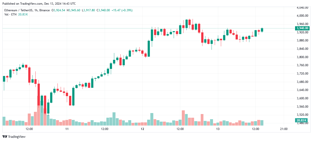 Ethereum’un fiyatı bugün itibarıyla 3,959.8 dolar seviyesinde işlem görüyor. Gün içinde 3,985.2’ye kadar yükselmesine rağmen %0.42’lik düşüş yaşadı. ETH’nin, 4.000 psikolojik seviyesinden destek bulduğu ve buradan yeni bir ralli başlatabileceği düşünülmekte. Kriptokoin.com olarak söz konusu 5.000 dolar fiyat tahminiyle ilgili ayrıntılara bu yazıda yer verdik.