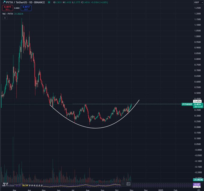 Tanrı PYTH’ye mum yüklüyor. Üç aylık birikimle mükemmel şekilde yuvarlanmış dip. Şu anda birikim direnci açısından son patronla flört ediyor [0,50 dolar fiyatının hemen altında] ve bir kez temizlendiğinde, önümüzde açık gökyüzü var. Solana beta bence yeniden sevgi görmeye başlamak üzere.