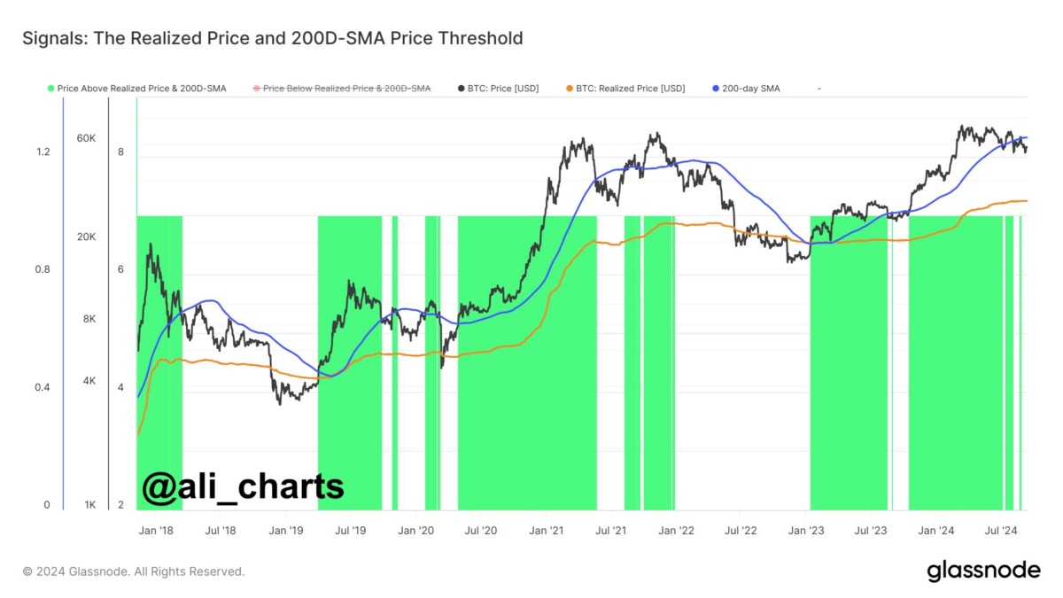 Kriptokoin.com’dan takip ettiğiniz üzere, kripto piyasası yeni bir ivme kazandı. Böylece, Bitcoin 60 bin dolara ulaşan güçlü bir performans sergiledi. Bununla birlikte, BTC boğalarının bunun devamını getirip getiremeyeceği şüpheli. Tecrübeli analist Ali Martinez, Bitcoin’in önemli bir hareketli ortalamanın altına düştüğünü söylüyor. Analist, bunun da BTC’nin mevcut fiyattan en son 2023 Ekim’te gördüğü seviyelere yaklaşık %47 oranında düşmesine yol açabilecek bir gelişme olduğunu belirtiyor. Bu bağlamda analist, şu açıklamayı yapıyor: