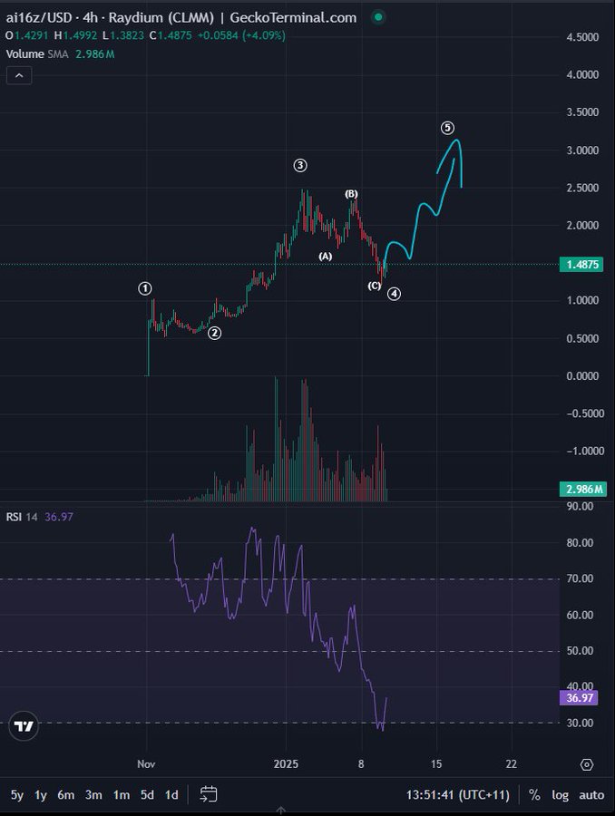 Yaygın olarak takip edilen bir kripto stratejisti, sadece birkaç ay içinde astronomik kazançlar elde eden yeni bir altcoinin yeni bir yükselişe geçmeye hazır göründüğüne inanıyor. Bluntz takma adıyla bilinen trader, X sosyal medya platformundaki 308.000 takipçisine, yapay zeka (AI) tarafından desteklenen merkezi olmayan yatırım platformu ai16z’nin (AI16Z) yerel tokeninin, üç dalgalı bir modelde meydana gelen %50’lik bir düzeltmenin ardından “gerçekten iyi göründüğünü” söylüyor. Analist, bir varlığın ABC geri çekilmesini tamamladıktan sonra beş dalgalı bir ralliye tanık olabileceğini belirten Elliott Dalga teorisini takip ediyor.