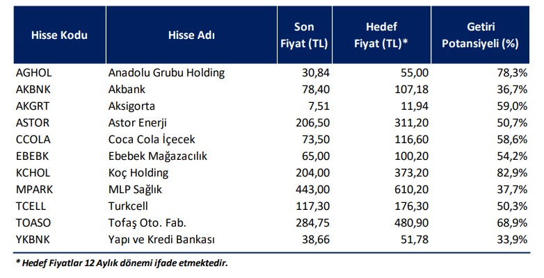 Beğendiğimiz hisseler: Anadolu Holding, Akbank, Aksigorta, Astor Enerji, Coca-Cola İçecek, Ebebek, Koç Holding, MLP Care, Tofaş, Turkcell ve Yapı Kredi Bankası.