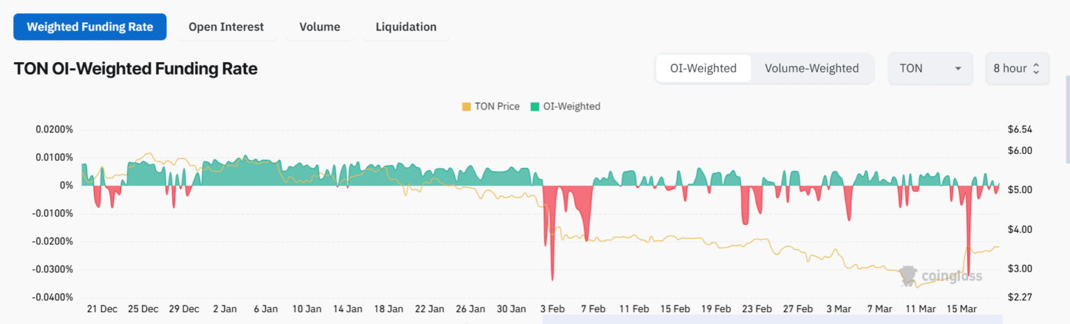 Coinglass verilerine göre, Toncoin’in Açık Pozisyon (Open Interest) hacmi son 24 saatte %10,55 arttı ve OI Ağırlıklı Fonlama Oranı pozitif bölgeye geçti. Bu, yatırımcıların Durov’un liderliğine ve TON ağına olan güvenini yansıtıyor.