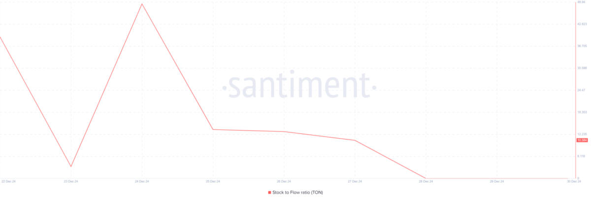 Santiment verilerine göre, Toncoin’in stok-akış oranı (SFR) son üç gün içinde sıfıra geriledi. SFR’deki bu tür bir düşüş, arz fazlasını ve azalan kıtlığı temsil eder. Artan arz ile birlikte satış baskısı yükselerek fiyatların düşmesine neden olabilir. Bunun yanında, borsalarda tutulan Toncoin arzındaki artış da bu durumu destekliyor. TON’un borsa akış dengesi, 3.459’a yükselmiş durumda ve bu, yatırımcıların daha fazla varlıklarını borsalara aktardığını gösteriyor.