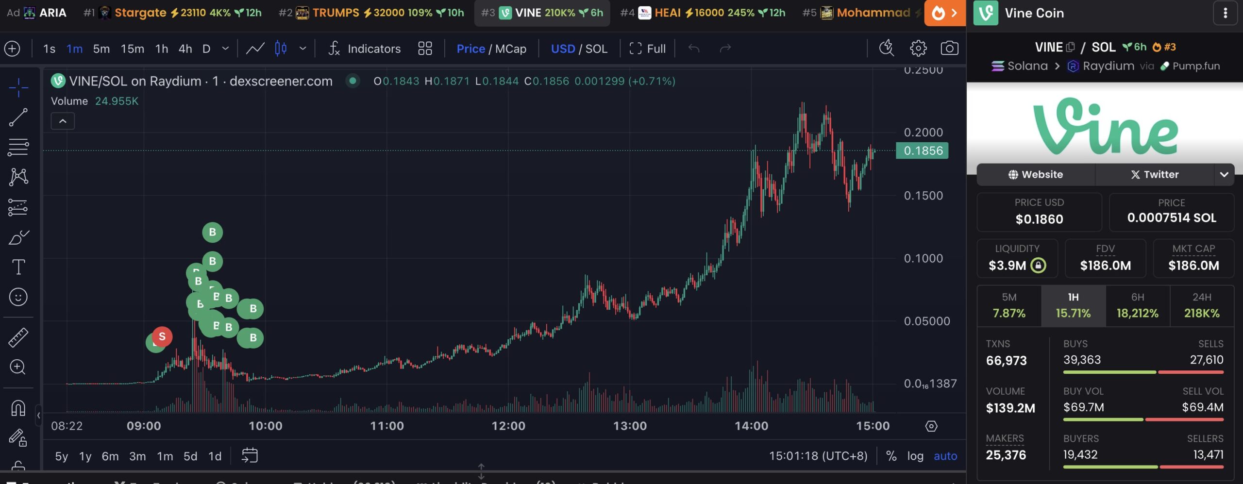 Bu meme coin, popüler Vine uygulamasının yaratıcısı Rus Yusupove tarafından piyasaya sürüldü. İlginç bir şekilde, VINE token piyasada viral hale geldi ve yüksek yatırımcı talebi kazandı. Basın zamanında, burada ve orada küçük dalgalanmalardan sonra 0.215 dolar seviyesinde işlem görüyor. Bununla birlikte, ticaret kayıplarla karşı karşıya kalmasına rağmen milyonlar kazandığından, sonunda işler iyi sonuçlandı.