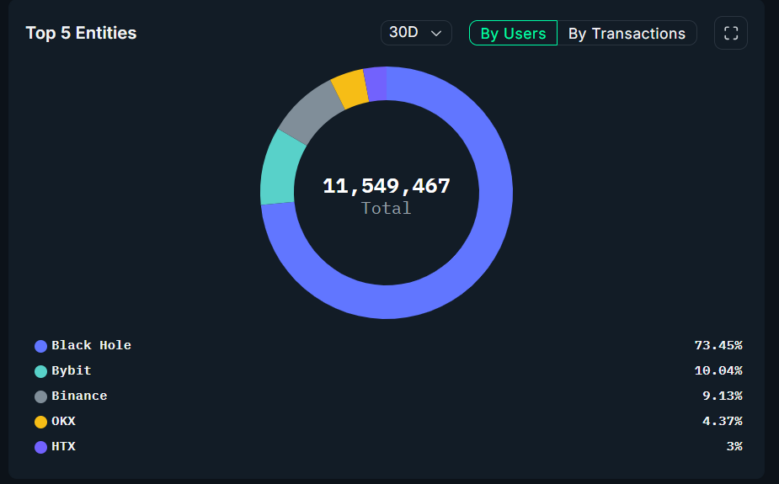 Tron ekosisteminde Mart ayında en fazla etkiyi yaratan beş büyük oyuncu da belli oldu. “Black Hole” isimli cüzdan, tüm ağ etkinliğinin %73.45’ini oluşturdu. Onu Bybit (%10.04) ve Binance (%9.13) izledi. OKX ve HTX ise sırasıyla %4.37 ve %3 ile listeyi tamamladı.