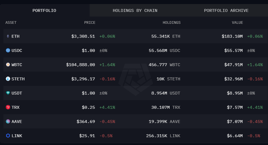 World Liberty Financial’ın holdingleri. Kaynak: Arkham İstihbarat