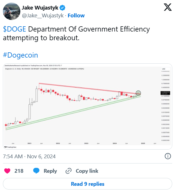 Dogecoin, Elon Musk’ın [uzun süredir Dogecoin savunucusu] Trump yönetiminde Hükümet Verimliliği Departmanı’nın başına atanabileceği yönündeki gerçek olasılıklar üzerine de yükseliyor olabilir.