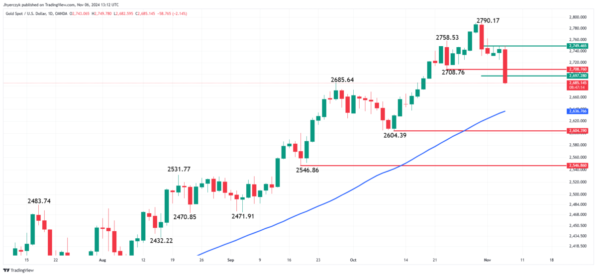 Trump’ın zaferi doları dört ayın en yüksek seviyesine çıkardı. Bu da altını uluslararası alıcılar için daha pahalı hale getirdi ve fiyatları baskıladı. Altın fiyatları, traderların yükselen ABD doları karşısında kârlarını kilitlemesiyle keskin bir düşüş yaşadı. Böylece, altın kilit destek seviyelerine ulaşarak daha fazla düşüş riskini beraberinde getirdi. Yatırımcılar Fed’i izlerken altın kritik bir testle karşı karşıya.