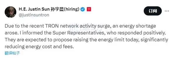 Justin Sun sosyal platformunda TRON Network (TRX Coin) faaliyetlerindeki son artışa dikkat çekti. Bu nedenle bir enerji sıkıntısı yaşandığını söyledi. Bu bağlamda, Süper Temsilcileri bilgilendirdiklerini belirtti. Bugün, TRON Network (TRX Coin) enerji sınırını artırmayı planlıyor. Ayrıca ekip, enerji maliyetlerini ve ücretlerini önemli ölçüde azaltmayı amaçlıyor.