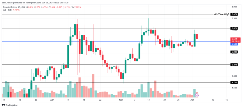 Ancak, 7,0 doları aşması tekrar başarısız olursa, TON bu yükselişi kaybedecektir. Bir sonraki ana destek 6,5 dolar seviyesindeyken, altcoin fiyatı hiçbir zaman bunun üzerinde kalmadı. Dolayısıyla bu da altcoin’i aşağıda bir düşüşe karşı savunmasız hale getirdi. Sonuç olarak, bu durumda boğa tezi geçersiz olur.