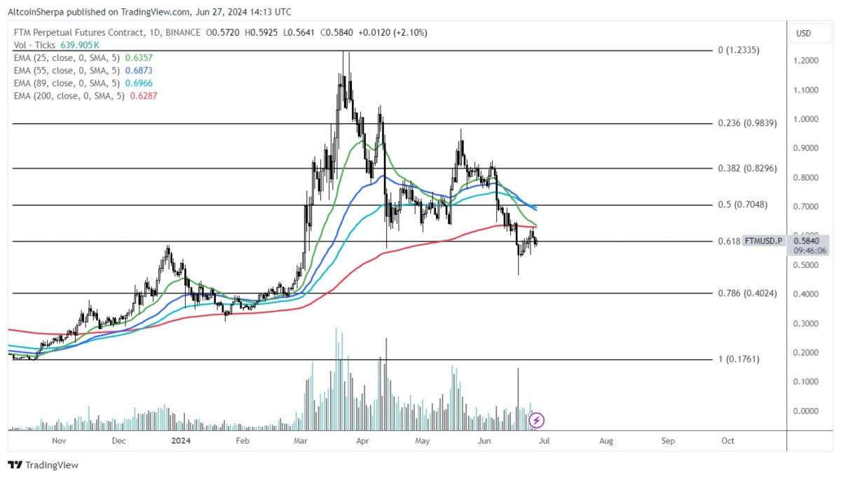 FTM: 200 günlük üstel hareketli ortalama (EMA) ile etkileşime girerek kilit bir seviyede konsolide oluyor. Bir taban oluşturmak için bir süre 0,50 dolar ve 0,70 dolar arasında bir pirzola aralığı oluşmasını bekliyorum. Bu oldukça sağlıklı bir fiyat hareketi olacaktır. FTM’nin Sonic’e dönüşüyle ileriye dönük iyi bir proje olacağını düşünüyorum.