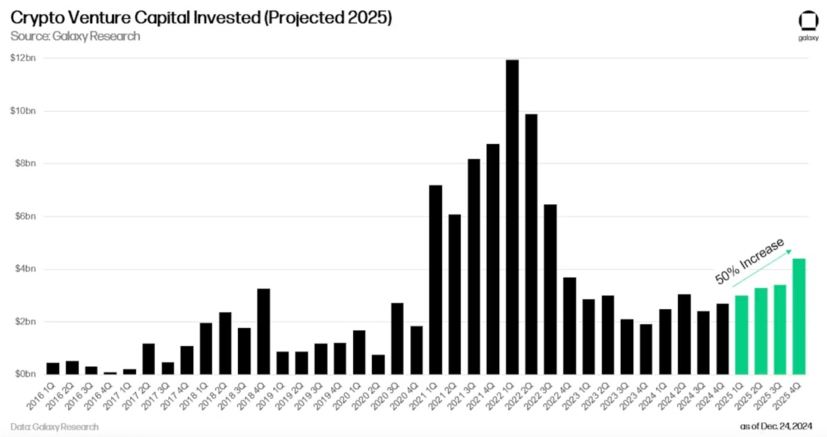 Galaxy Research’in analizlerine göre, Amerika Birleşik Devletleri’nde faiz oranlarının düşmesi ve daha net bir düzenleyici çerçevenin oluşması, bu yıl kripto girişim sermayesi faaliyetlerinde %50’lik bir artışa neden olabilir.