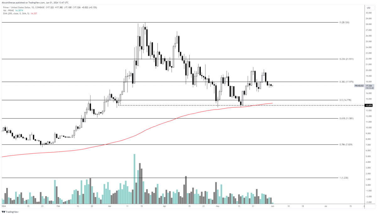 Kaynak: Altcoin SherpaBu arada, PRIME yazı sırasında günlük bazda %9,5 artışla 18,40 dolardan işlem görüyordu. Token haftalık grafiğinde ise %6,55 artış kaydetti.